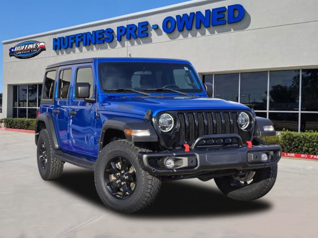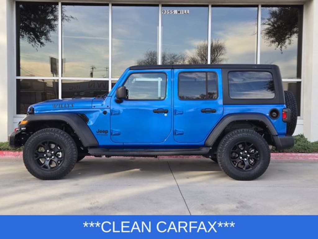 CARFAX One-Owner. Hydro Blue Pearl Coat 4D Sport Utility 2021 Jeep Wrangler Unlimited Willys 4WD 8-Speed Automatic 2.0L I4 DOHC